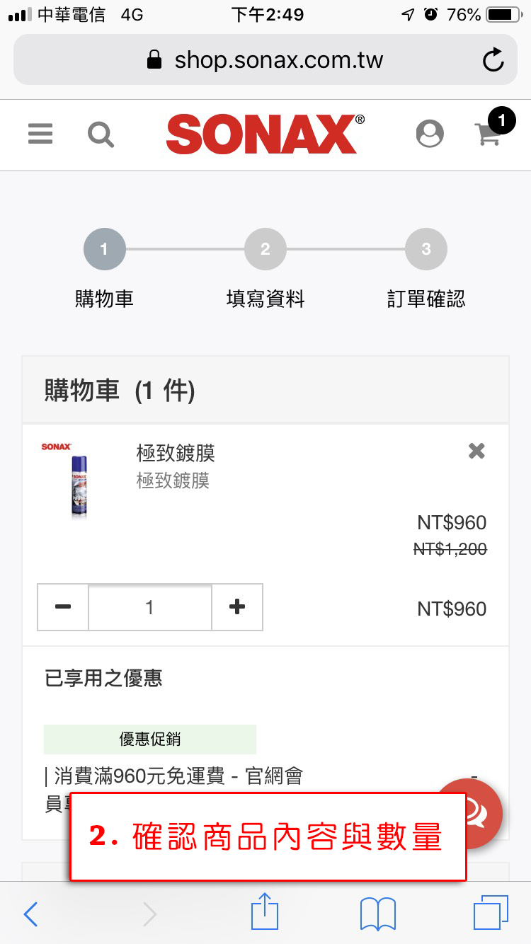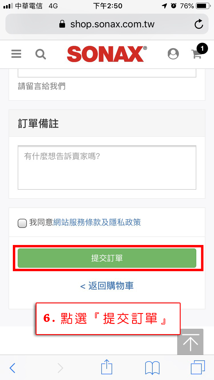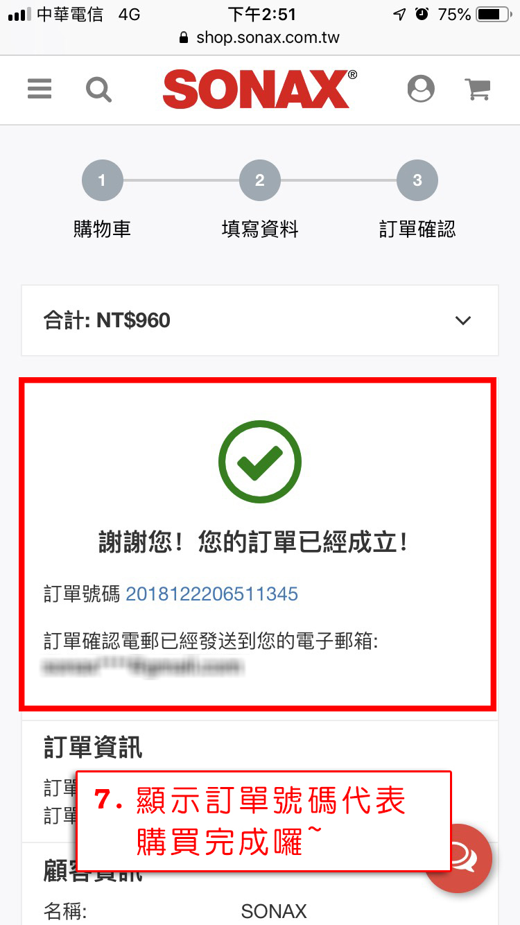 完成購物後會顯示訂單號碼,請務必記錄方便查詢訂單唷!