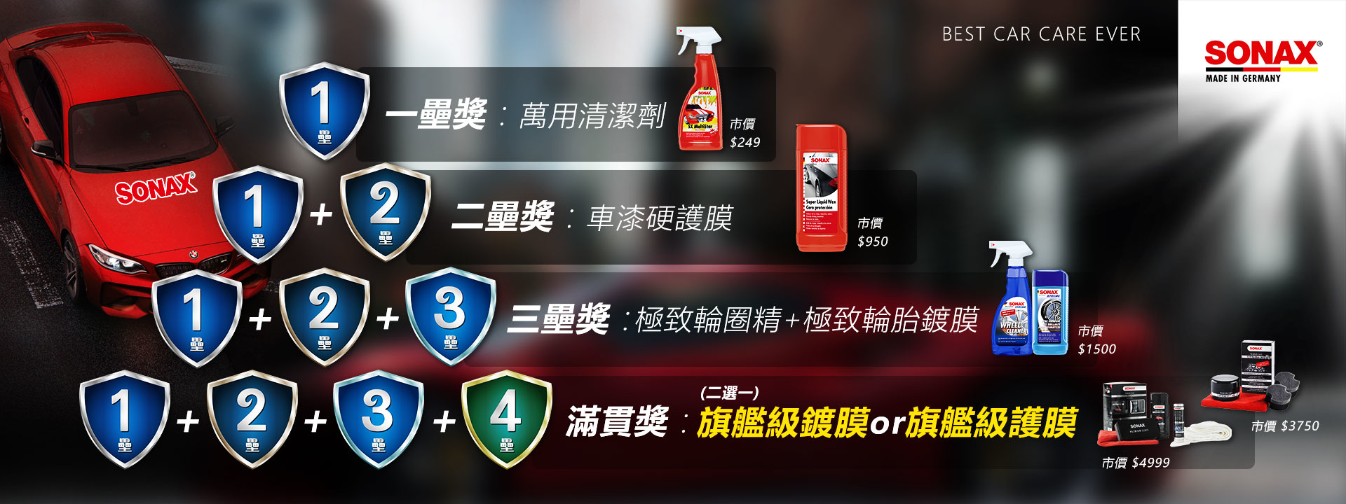 滿貫獎:成功上一壘+二壘+三壘+本(四)壘;贈旗艦級護膜 或 旗艦級鍍膜 二擇一 (請於訂單備註指定贈品,未指定將隨機發貨)