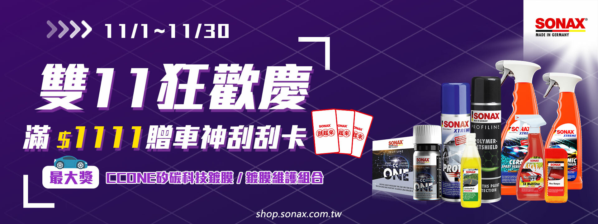 1. 本活動為SONAX官方商城獨家優惠(https://shop.sonax.com.tw/),其他平台恕不適用。