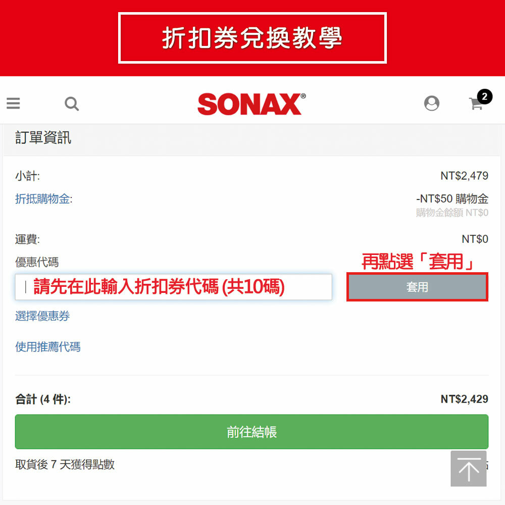 ■ 本刮刮卡限使用於SONAX官方商城(https://shop.sonax.com.tw/),不適用於其他平台使用。