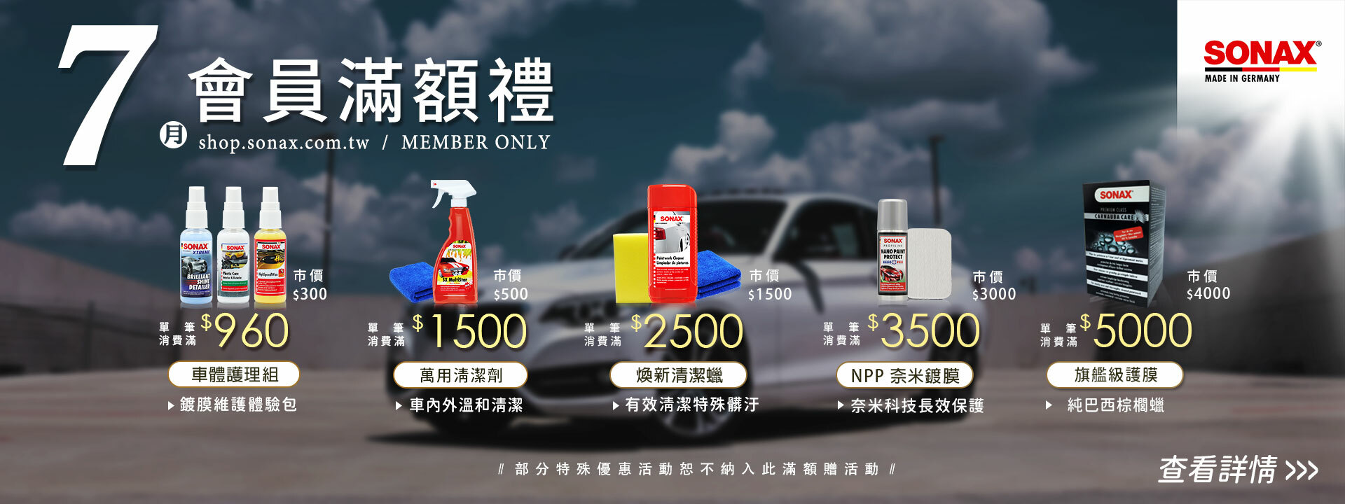 1. 本活動為SONAX官方商城獨家優惠(https://shop.sonax.com.tw/),其他平台恕不適用。