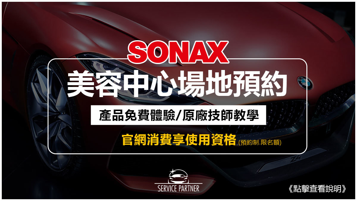 ※可享SONAX汽車美容中心場地使用一次(3小時),全程安排SONAX專業技師從旁指導。