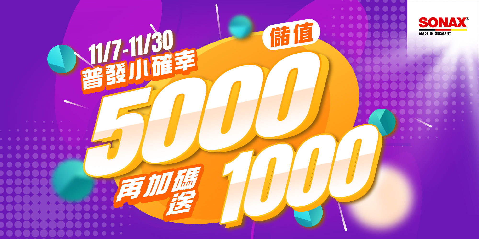 ➤活動內容:於SONAX官方商城下單$5,000專屬賣場