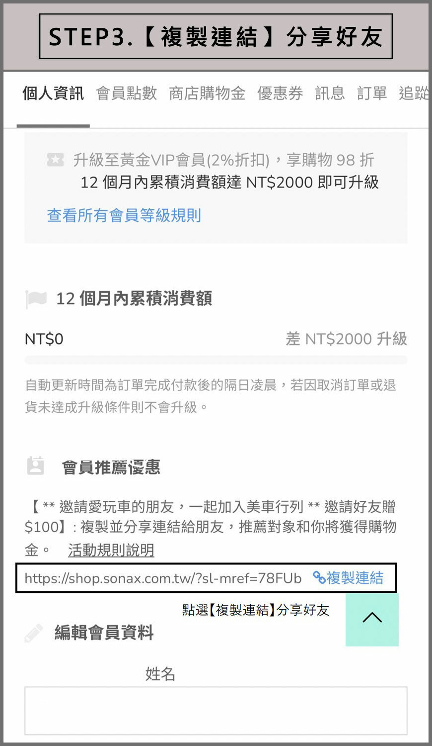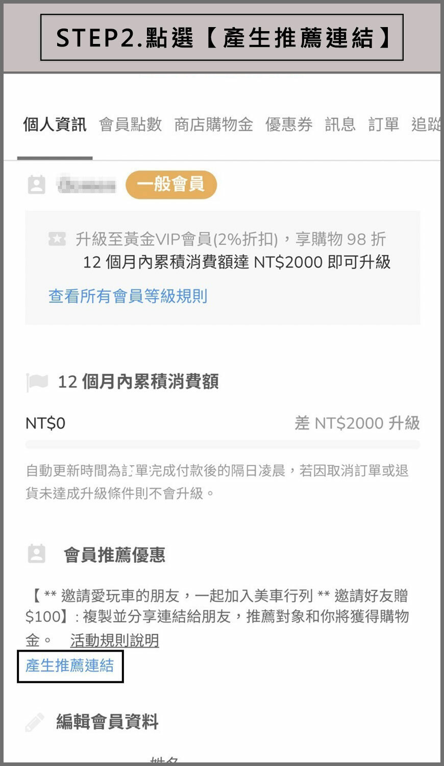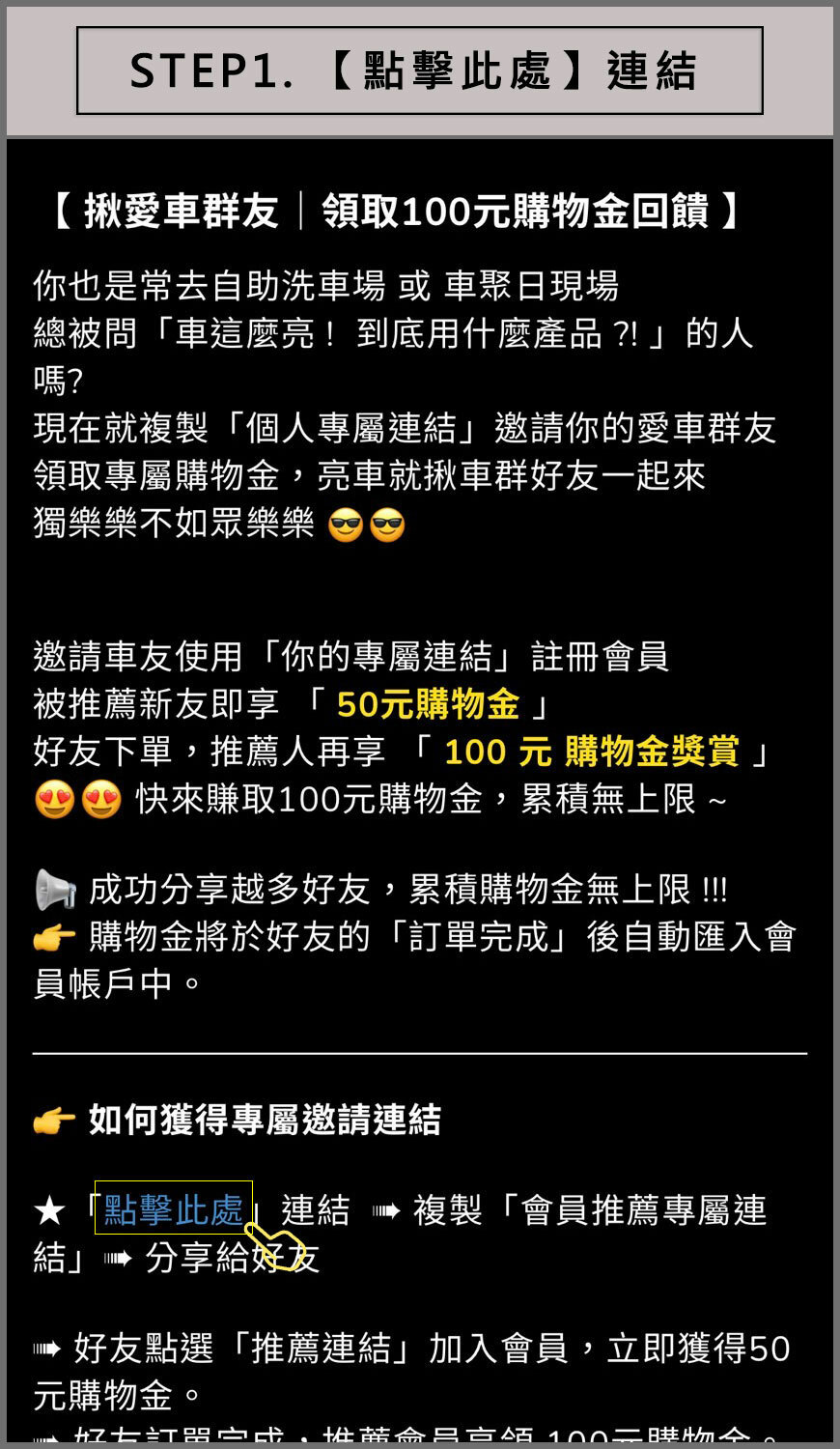 邀請車友使用「你的專屬連結」註冊會員