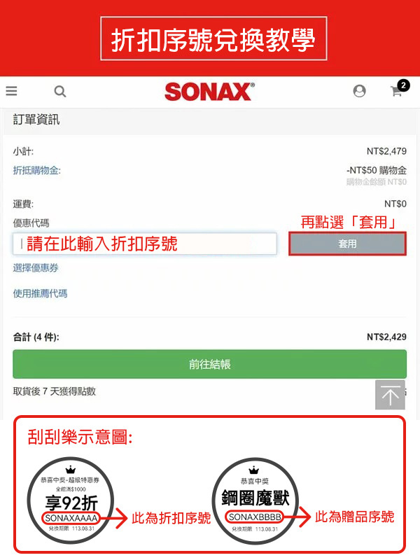單筆達$2000 加碼贈二張,可獲得三張「驚喜刮刮卡」
