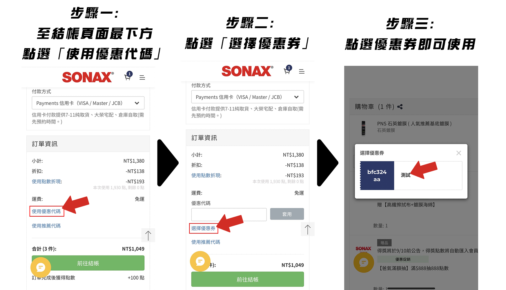 SONAX 優惠券🎉使用教學