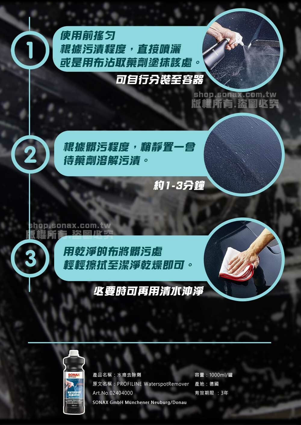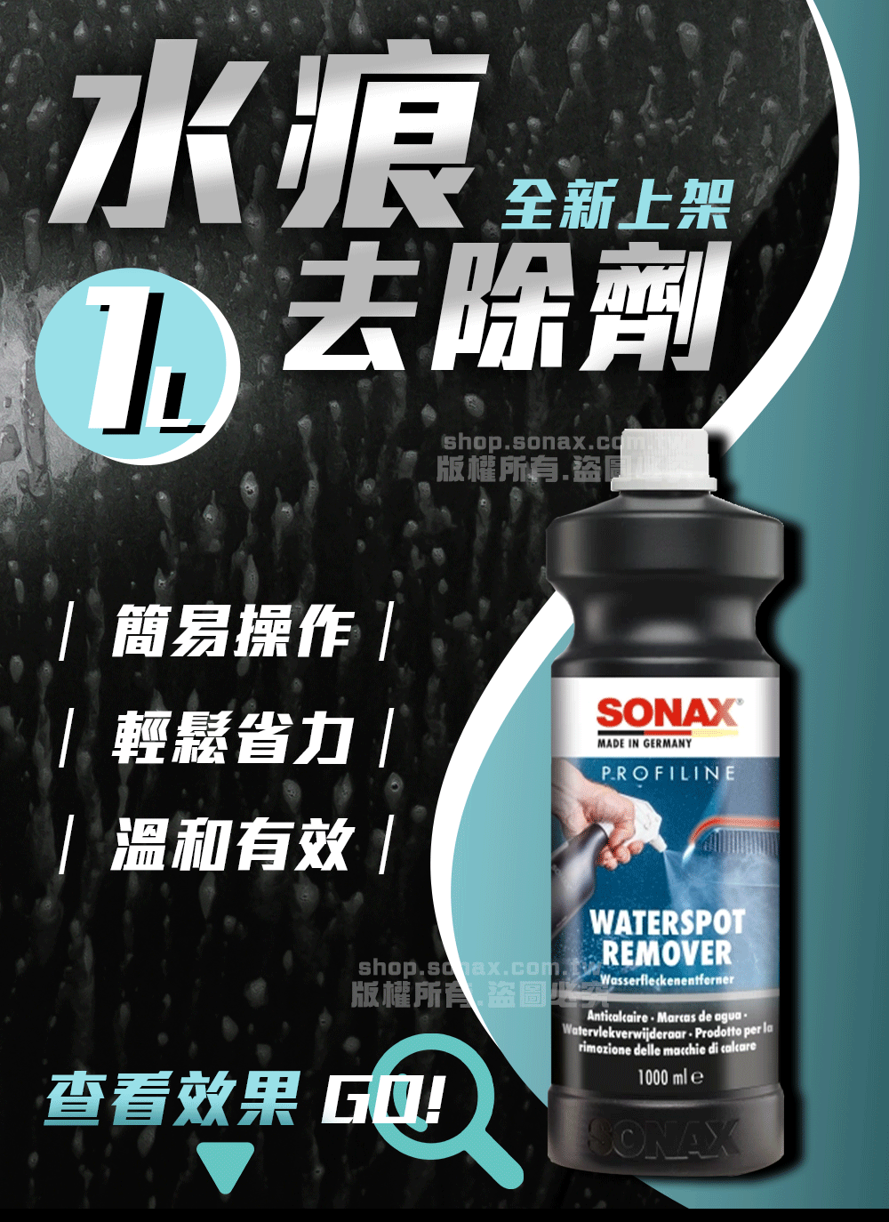 SONAX水痕去除劑,可快速清除表面微小的水痕、水斑,