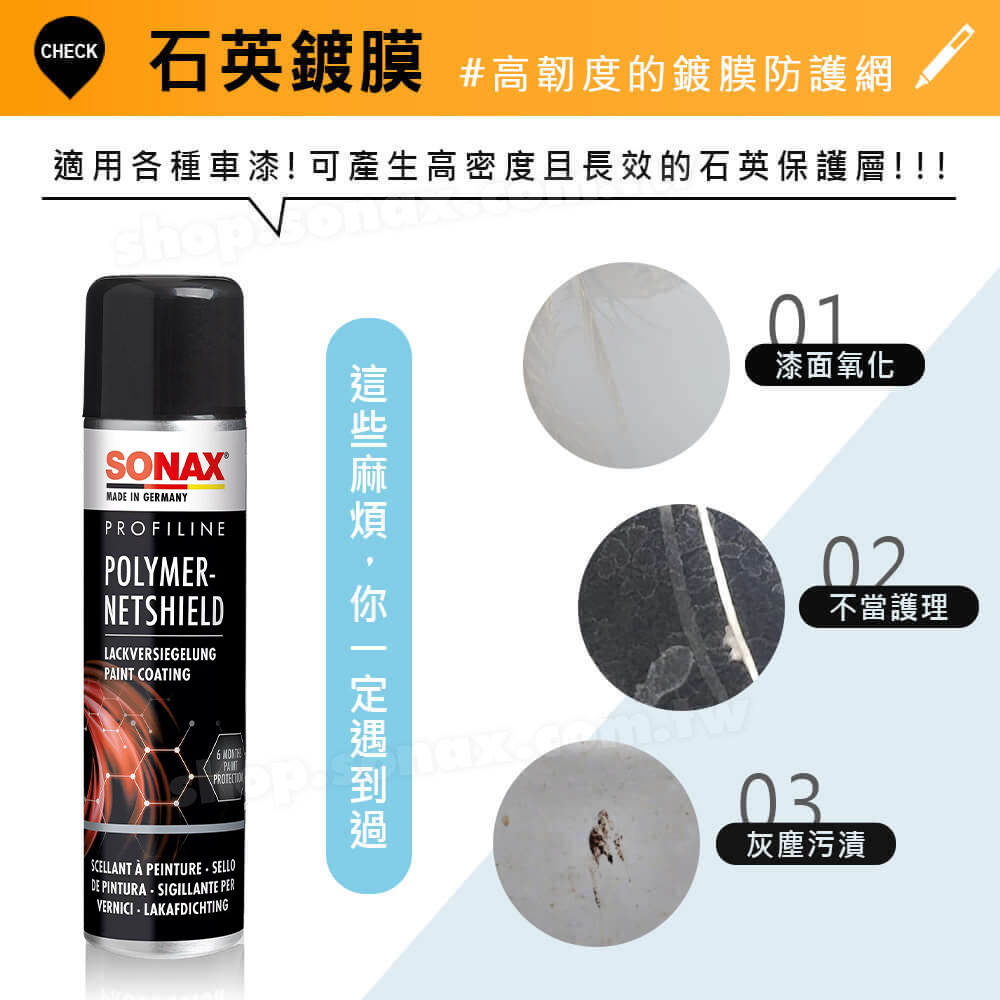 產品名稱 : 石英鍍膜 SONAX Polymer-NET SHIELD