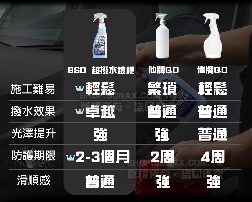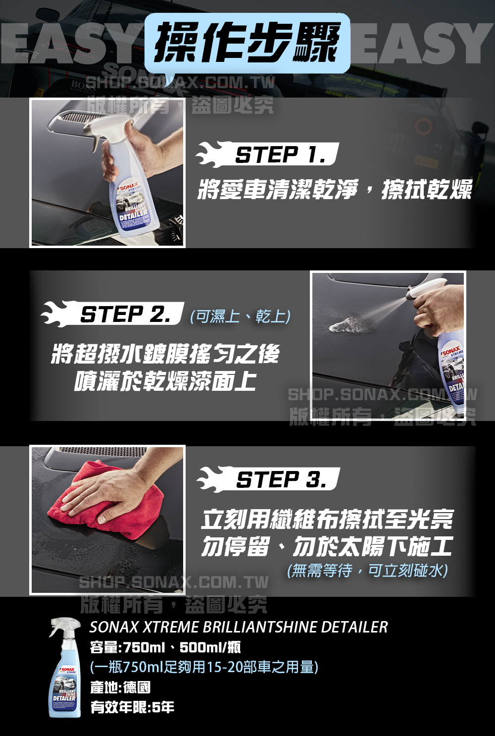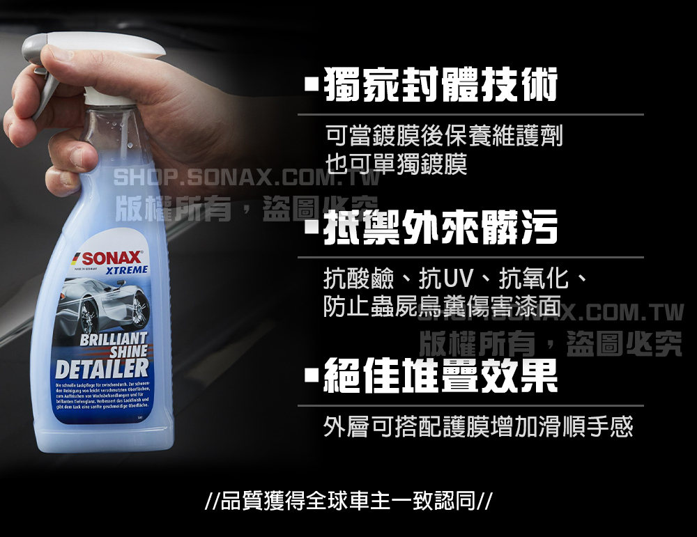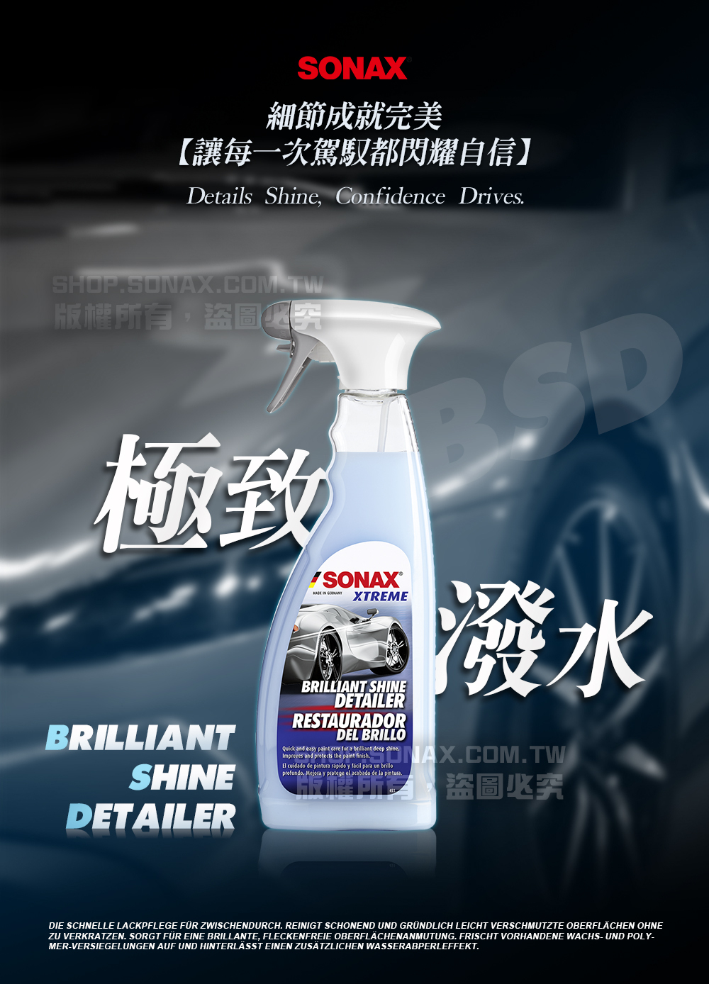產品名稱 : SONAX BSD 超撥水鍍膜 SONAX XTREME BrilliantShine Detailer (鍍膜保養維護劑QD)