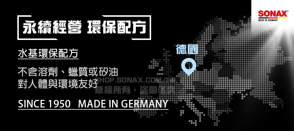 A: SONAX鍍膜採用獨家專利材料Hybrid NPT研發製作 (新款產品則加入SIC矽碳科技材料),為軟結晶鍍膜,與市售鍍膜最大不同就是韌性的提升,面對外力或髒汙侵蝕時將發揮以柔克剛的原理來保護車漆。
