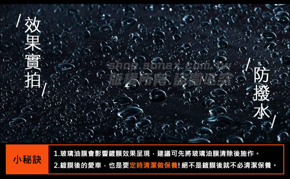 最佳建議清潔完可以搭配密封維護劑,保養修補鍍膜表層的潑水介面,以延長鍍膜的效果。