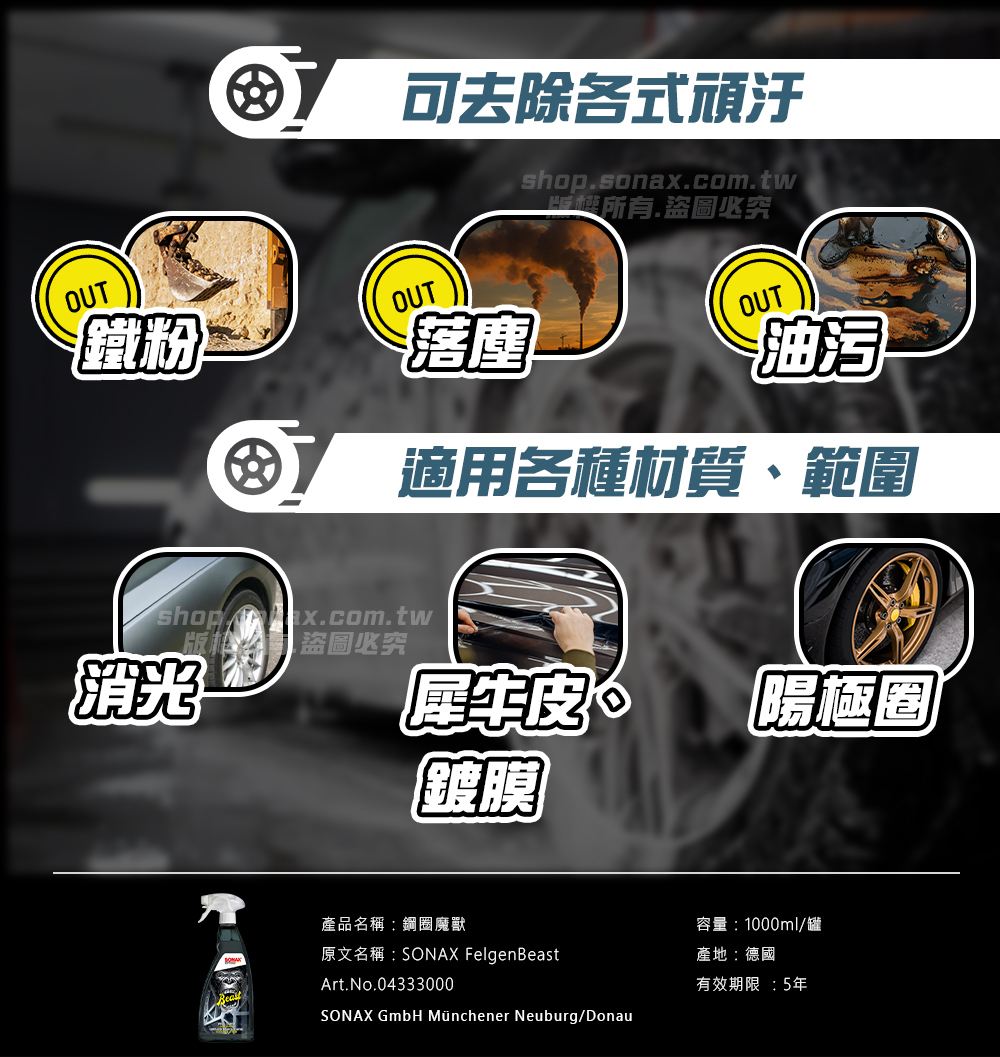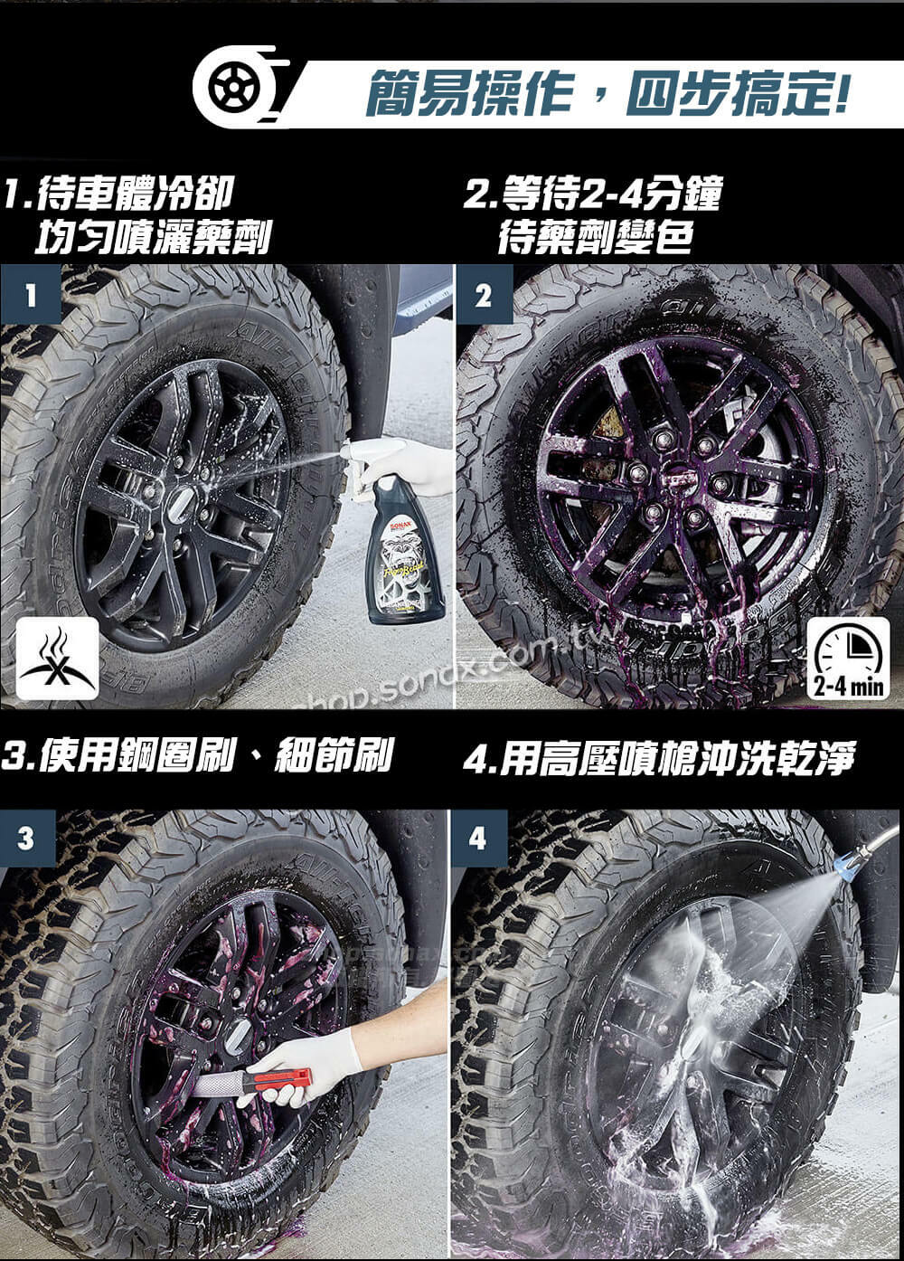 完整的烤漆與鋼圈都可使用,較敏感的材質可使用前先於不明顯處測試。