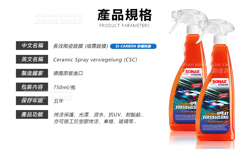 產品名稱 : 長效陶瓷鍍膜 (噴霧鍍膜) SONAX XTREME Ceramic Spray versiegelung