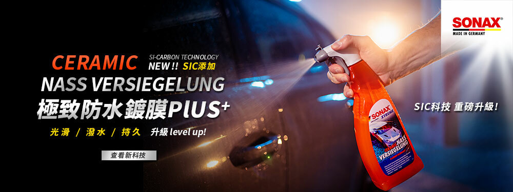A: SONAX鍍膜採用獨家專利材料Hybrid NPT研發製作 (新款產品則加入SIC矽碳科技材料),為軟結晶鍍膜,與市售鍍膜最大不同就是韌性的提升,面對外力或髒汙侵蝕時將發揮以柔克剛的原理來保護車漆。