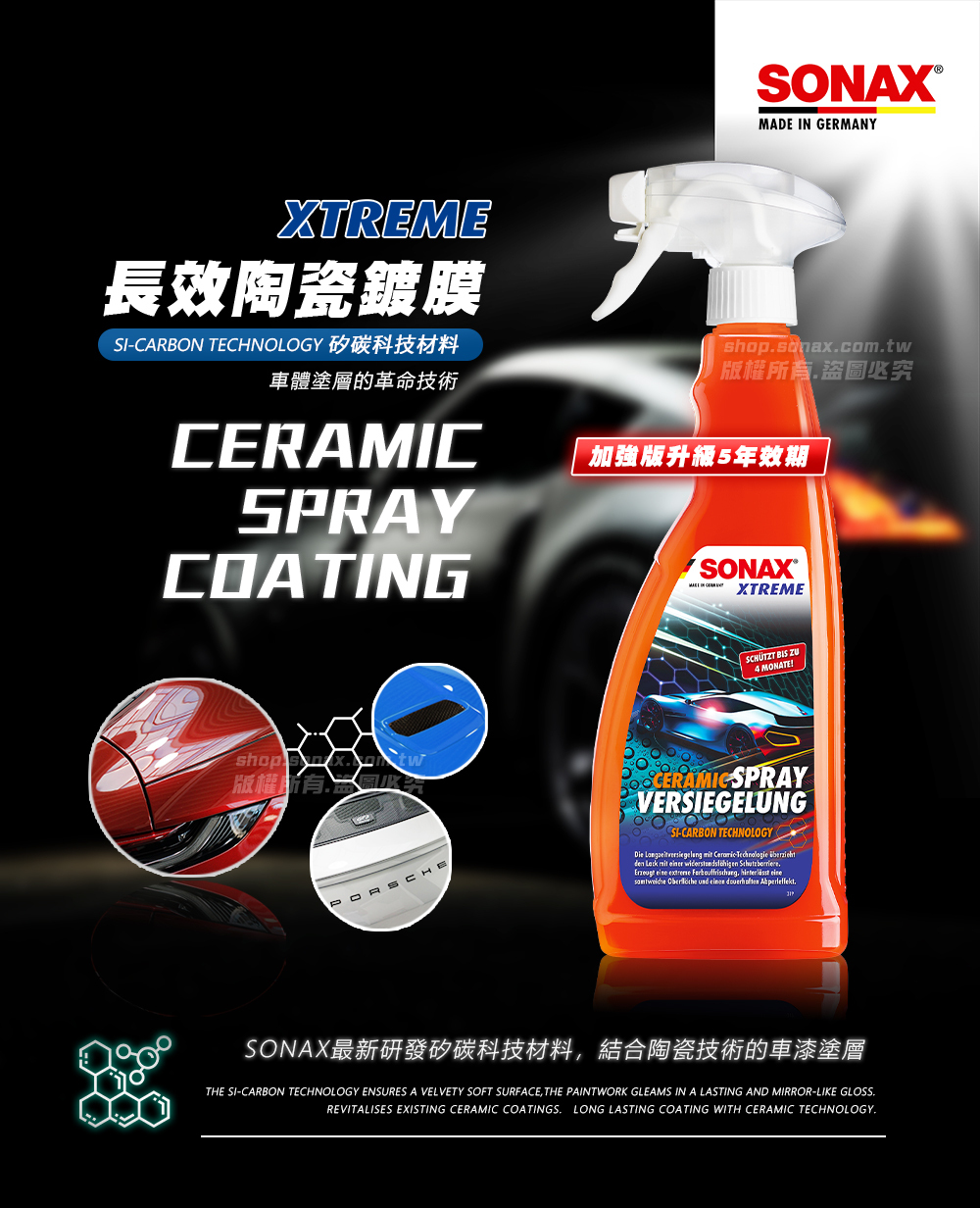 產品名稱 : 長效陶瓷鍍膜 SONAX XTREME Ceramic Spray versiegelung( 簡稱 CSC )